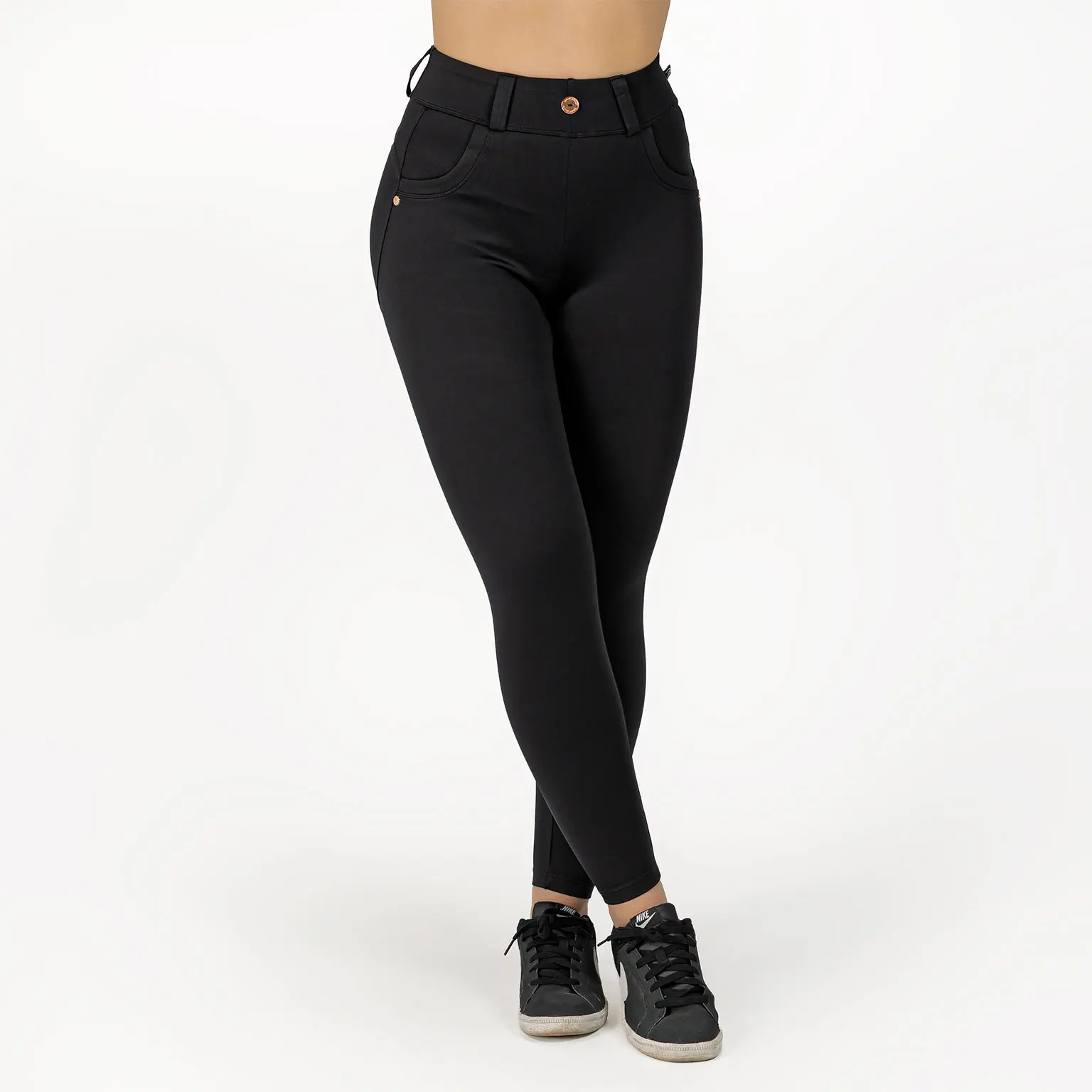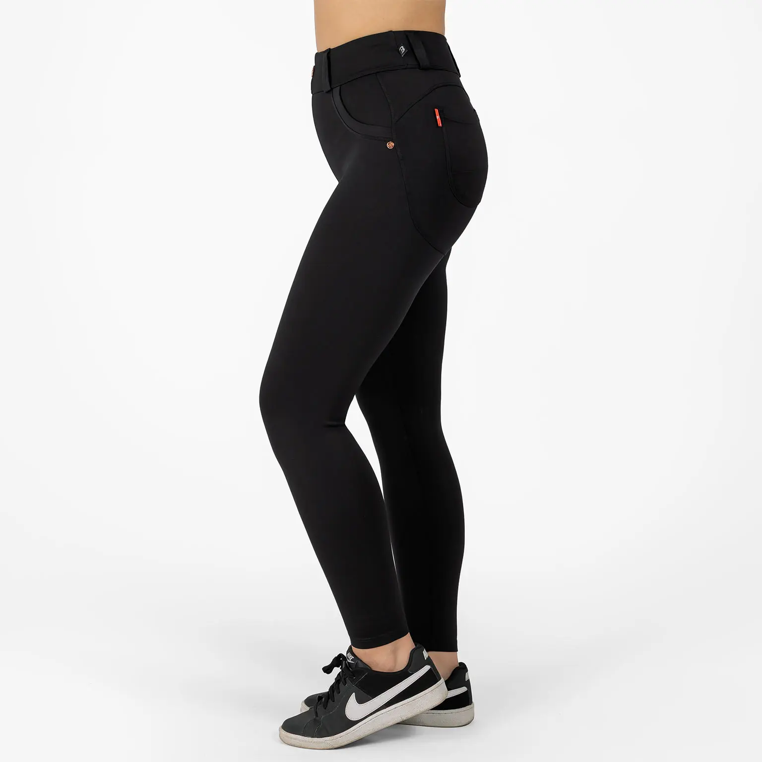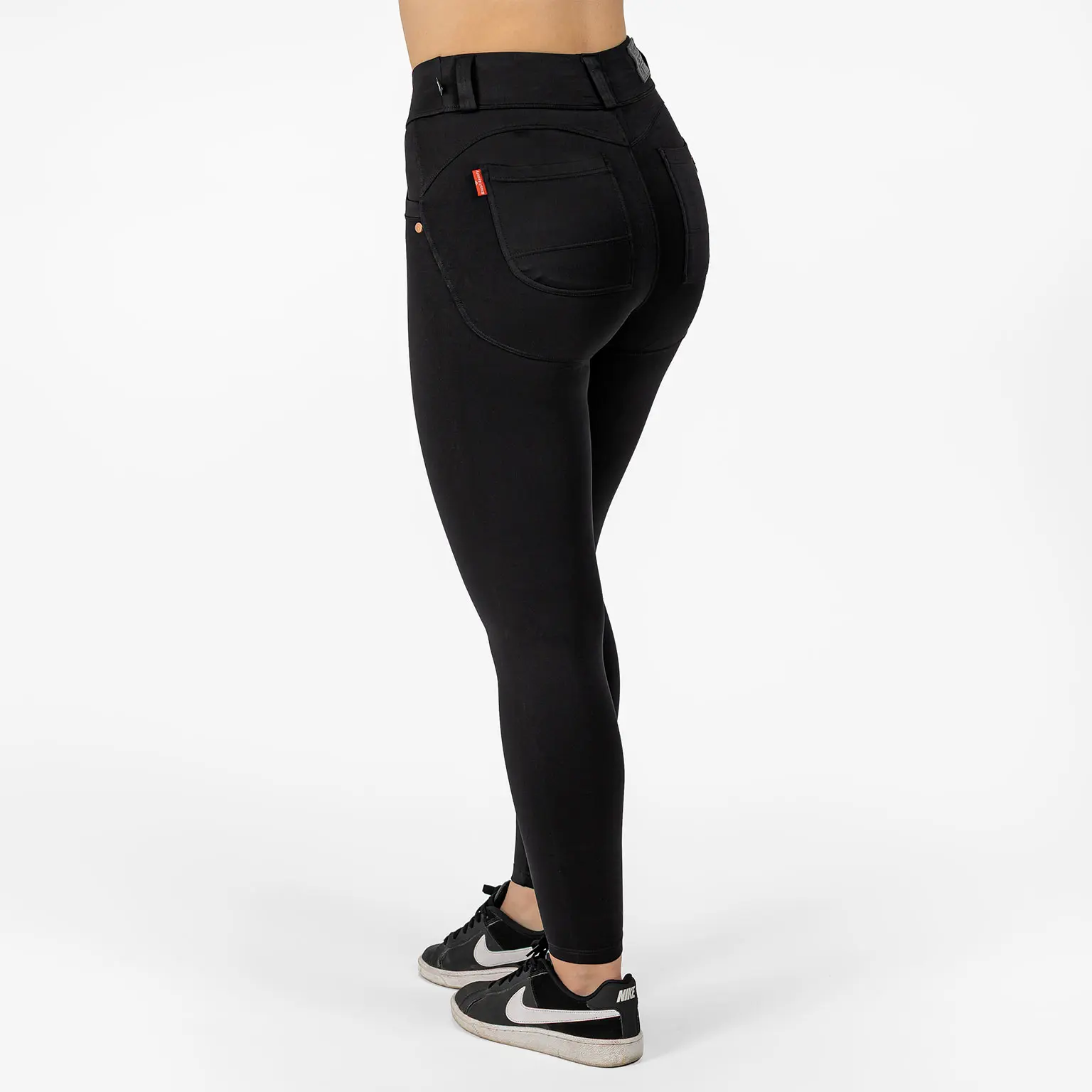 BRASIL BEAUTY Bianca Shape Up Leggings – Black on täydellinen valinta, kun haluat yhdistää housumaisen tyylin ja vartaloa imartelevan muotoilun. Nämä leggingsit on suunniteltu erityisesti takapuolta korostavaksi: kaareva takasauma, napakka mutta joustava materiaali ja aidot, strategisesti sijoitetut takataskut luovat nostetta ja muotoa juuri oikeisiin kohtiin.